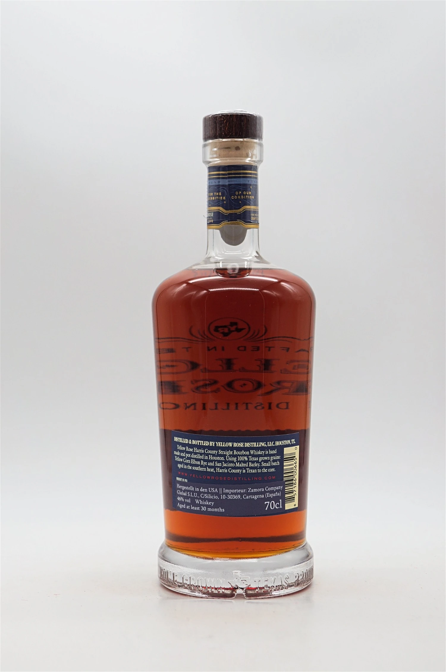 Yellow Rose Harris County Straight Bourbon Whisky wird in Houston, TX, von Hand hergestellt und in Pots destilliert. Mit 100 % in Texas angebauten Getreidesorten: Yellow Corn, Elbon Rye und San Jacinto Malted Barley, die dann in kleinen Chargen in der südlichen Hitze gereift sind, ist Harris County bis ins Mark texanisch.