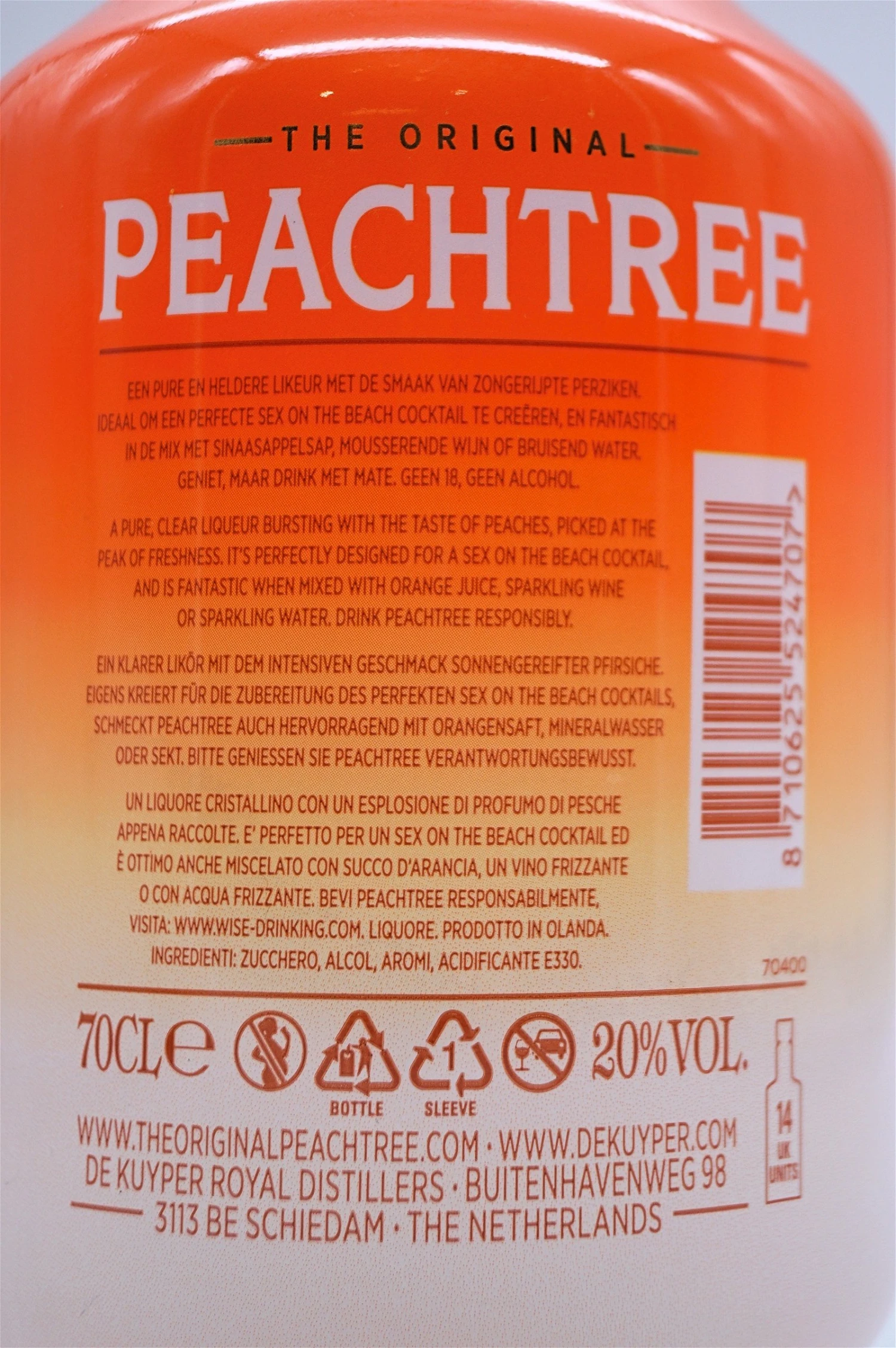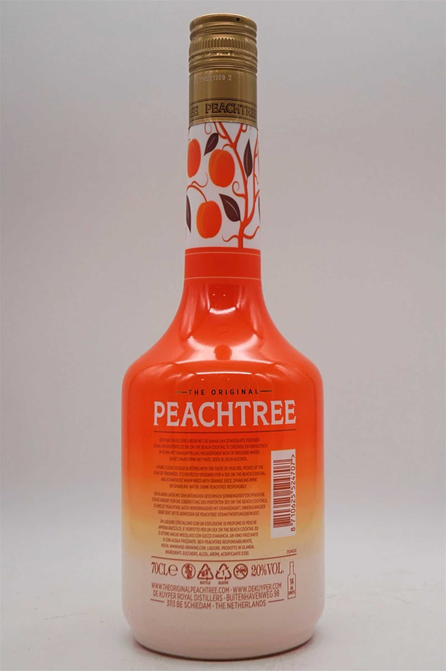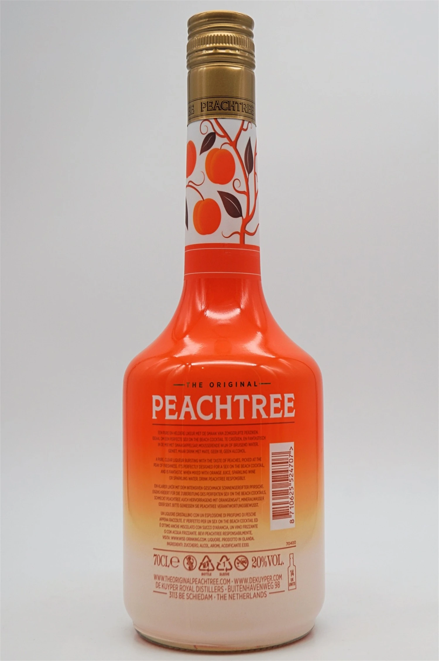 Ein leichteres Getränk mit geringerem Proof, das an den Sommer erinnert und leicht zu mischen ist! Peachtree ist der erste Likör, der den Geschmack und Geruch von baumreifen Pfirsichen hat, und der Likör wird von vielen als erhaben empfunden. Heute ist Peachtree der meistverkaufte Pfirsichlikör weltweit. Seit den Anfängen im Jahr 1984 hat dieser originale Pfirsich-Cocktail-Likör eine erstaunliche Menge von mehr als 13 Millionen Flaschen in über 100 Ländern verkauft.