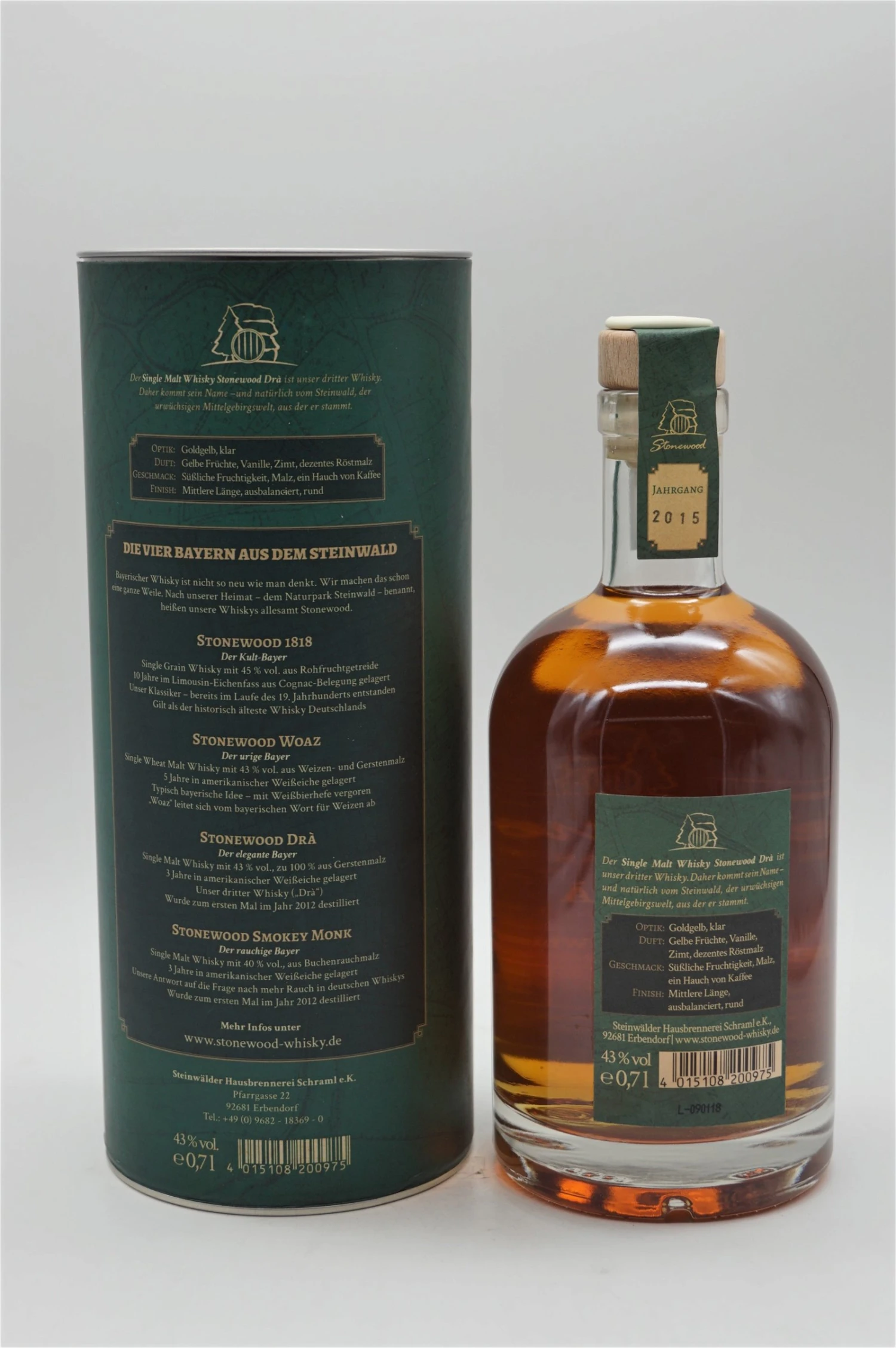 Der Single Malt Whisky Stonewood Drà ist unser dritter Whisky. Daher kommt sein Name – und natürlich vom Steinwald, der urwüchsigen Mittelgebirgswelt, aus der er stammt.
