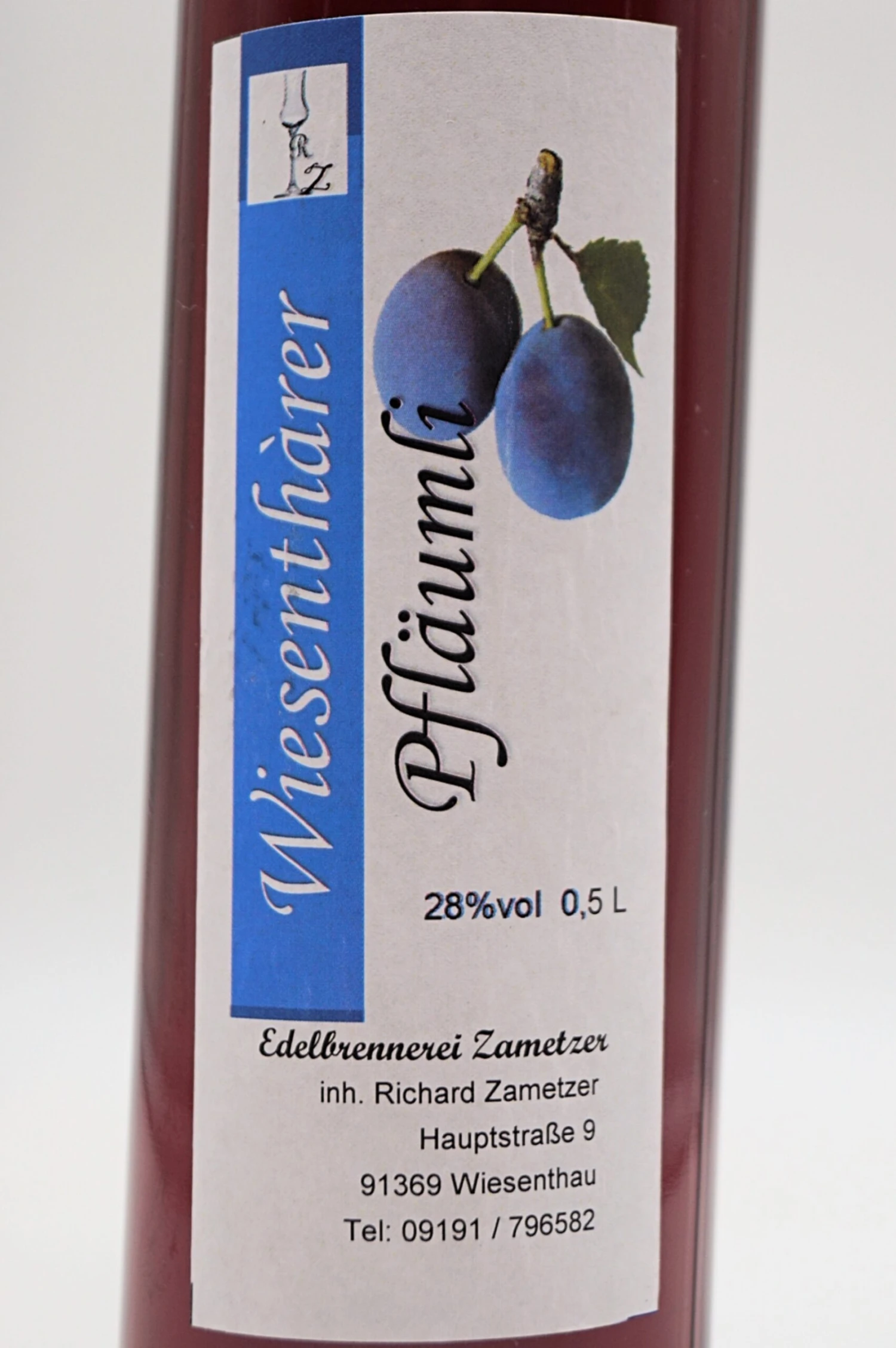 Genießen Sie den Wiesenthauer Pfläumli Likör aus der Edelbrennerei Zametzer in der Fränkischen Schweiz. Dieser Likör wird mit Hingabe und handwerklichem Können aus sonnengereiften Pflaumen destilliert.